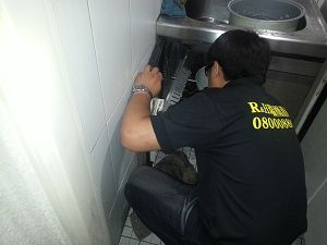 吧檯工作區針對蟑螂藏匿處噴灑裁效藥劑
